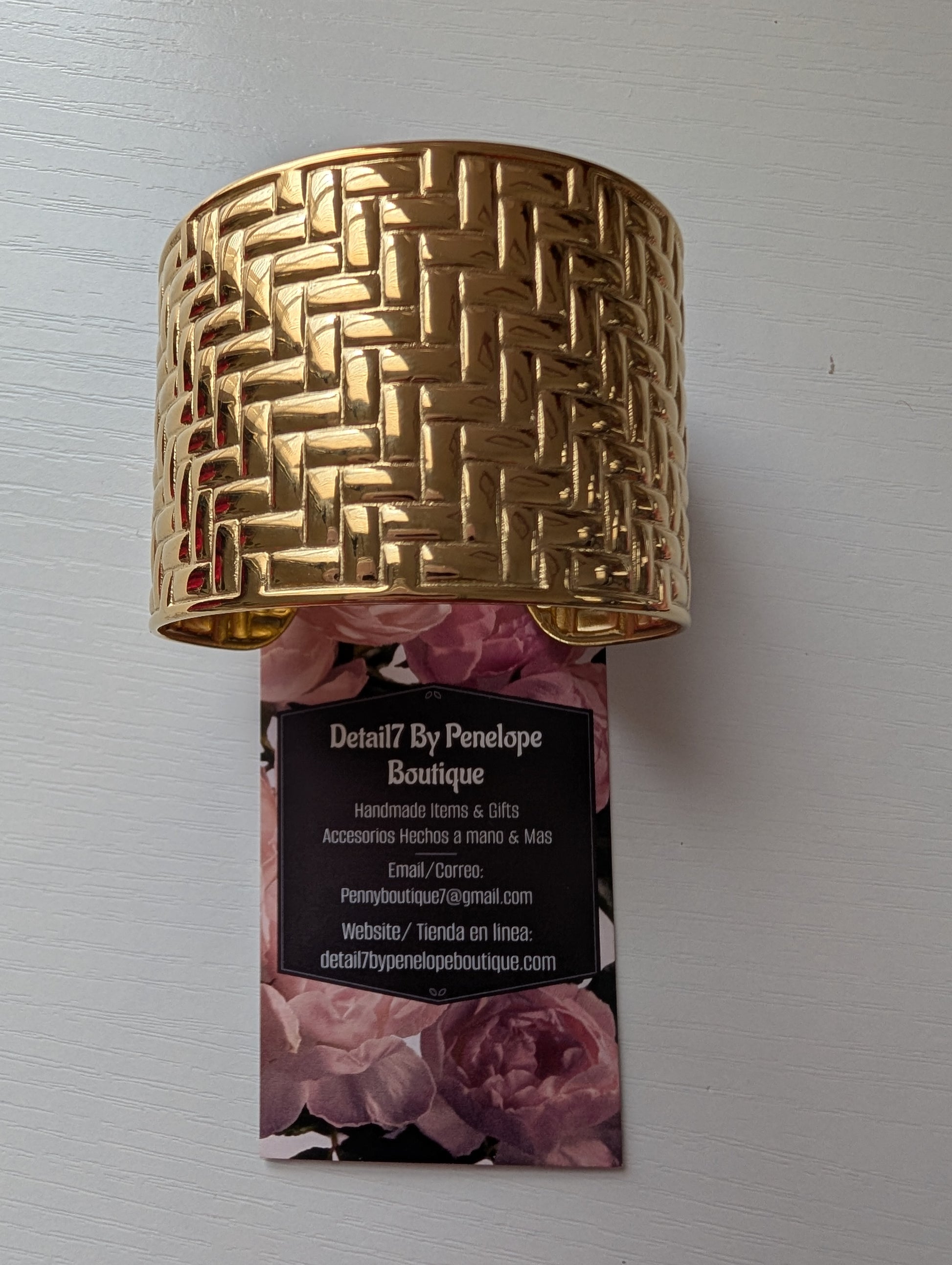 This Bracelet Cuff Pattern combines durability with refined elegance, crafted from stainless steel and elegantly finished with 14K gold plating. Its sturdy construction ensures long-lasting wear, while the gold overlay adds a sophisticated touch, making it an essential piece for both everyday use and special occasions. Expertly designed, this cuff offers a timeless accessory that complements a variety of styles.
