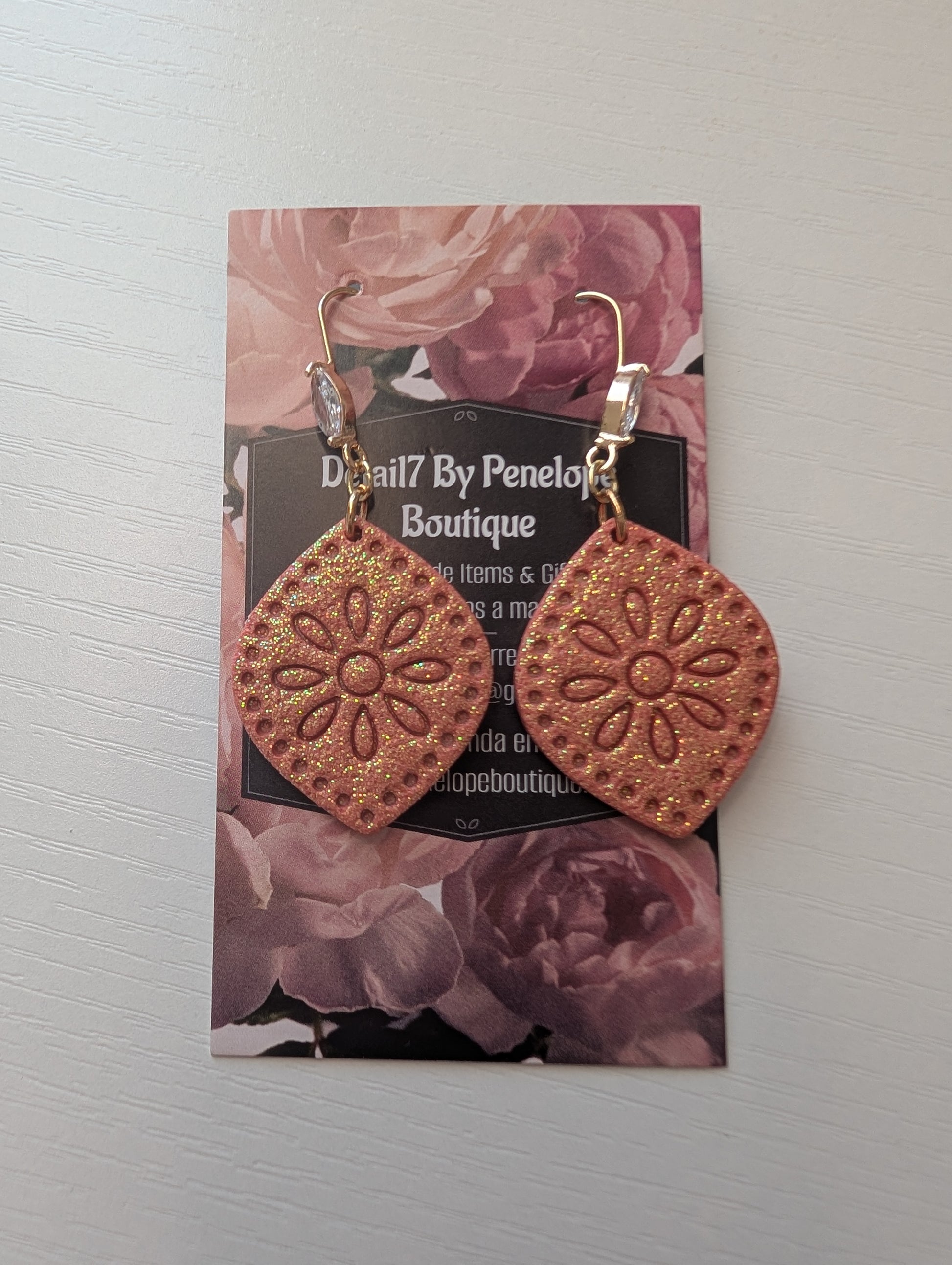 MeliaRoca earrings combine handcrafted clay artistry with delicate crystal accents, elegantly finished with secure hooks. These earrings offer a refined balance of texture and sparkle, making them a sophisticated choice for those seeking