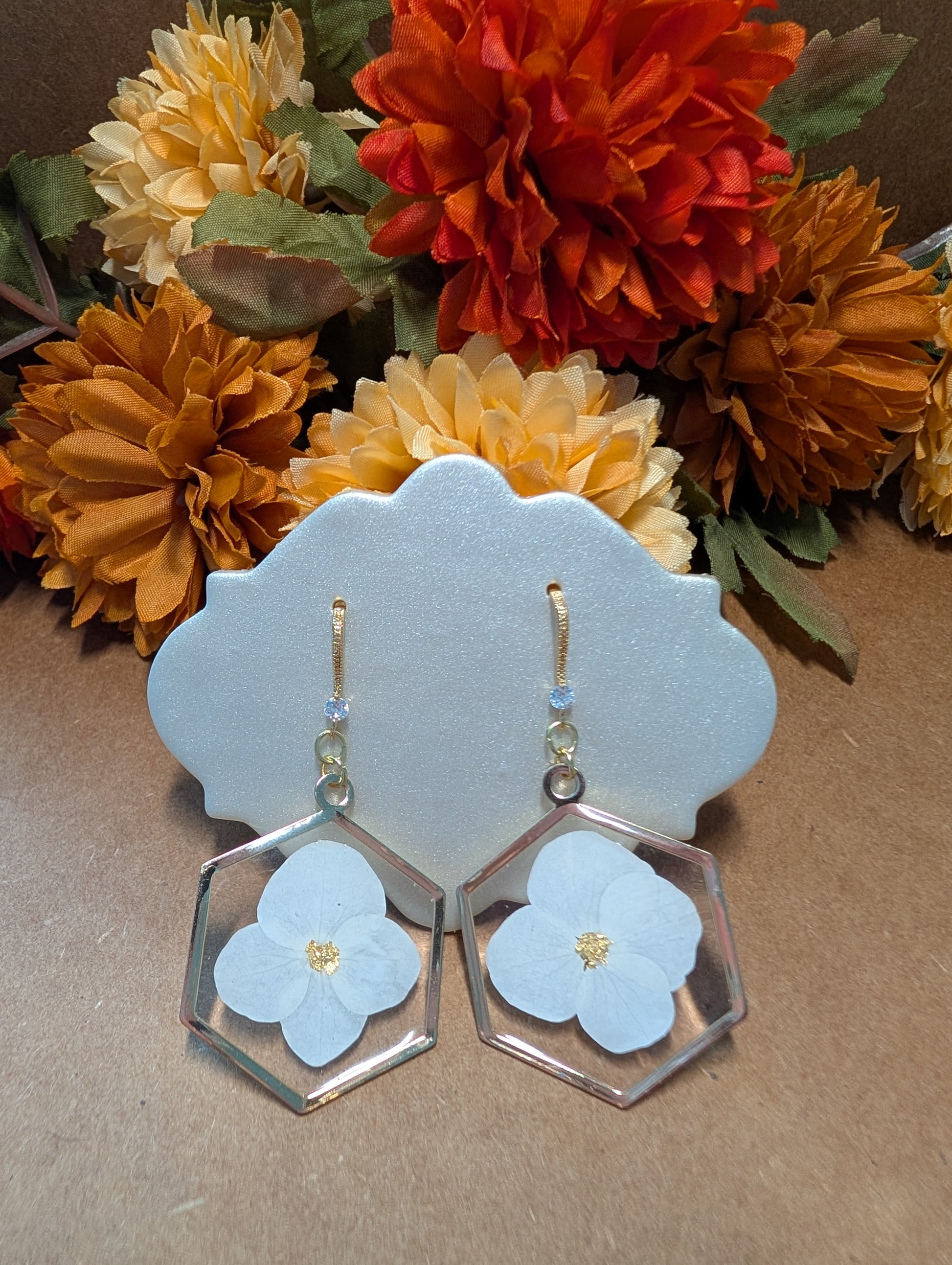 Made with a beautiful dried flower encased in resin with a gold leaf detail.